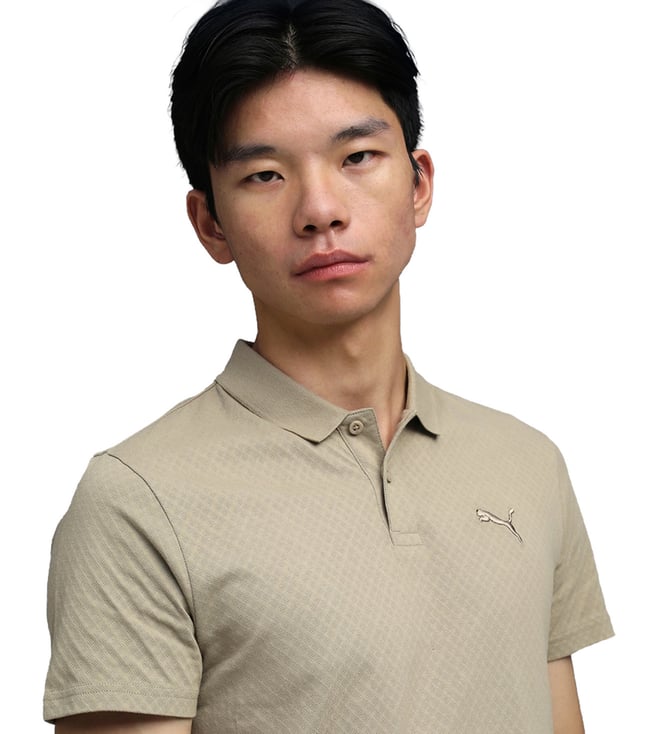 Puma Beige Premium Essentials Jacquard Slim Fit Polo T-Shirt