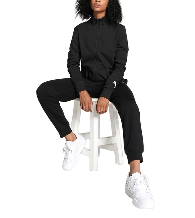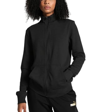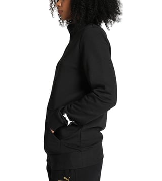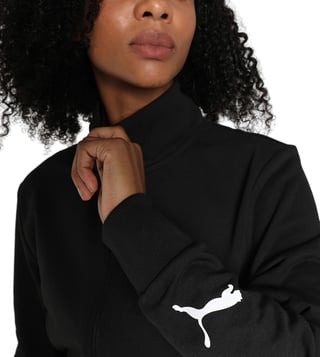For a sports-inspired style, look no further than the Contrast track sweatshirt. With a bold Puma cat logo on the sleeve and cozy kangaroo pockets, this piece is perfect for both workouts and casual wear. The ribbed hems add extra comfort and style to this sporty staple.