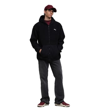 Puma Black Essentials Elevated Relaxed Fit Full Zip Hoodie