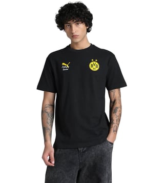 Elevate your little one's style with the Puma Black & Faster Yellow Kidsuper Bvb Relaxed Fit T-Shirt. This vibrant tee combines the iconic Puma comfort with a relaxed fit for all-day wear. Perfect for the young soccer fan, this shirt features bold colors and the Bvb logo for added flair. Made with high-quality materials, it offers durability and breathability, making it ideal for active kids. Give your child a trendy look that stands out on and off the field with this must-have Puma t-shirt.