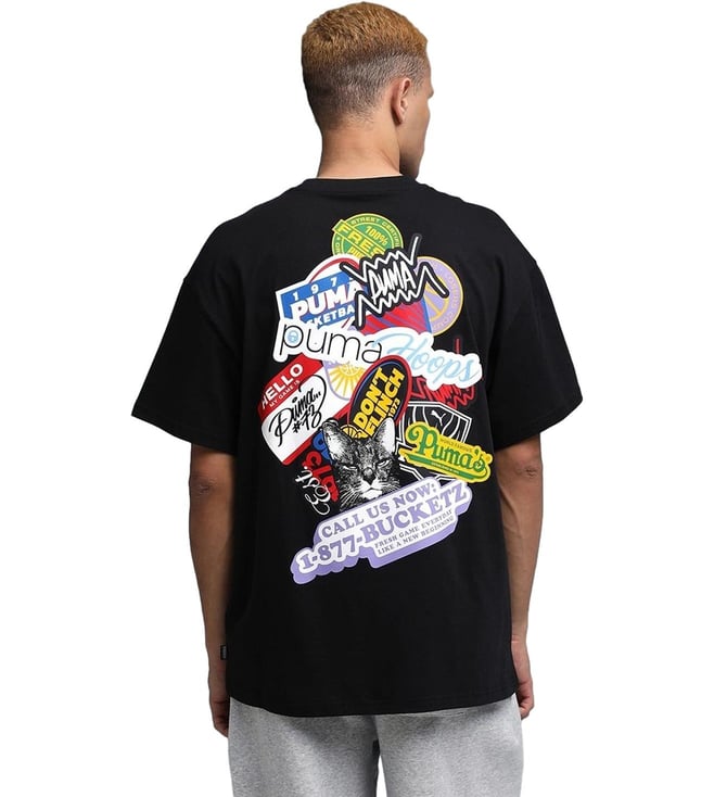 Puma Black HOOPERS HOTLINE Printed Oversized Fit Basketball Tee