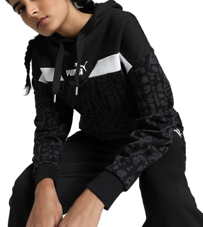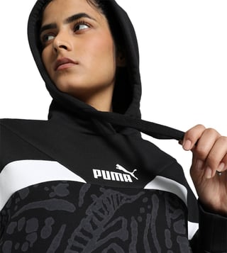 Stay stylish and comfortable in this hoodie. Designed with a kangaroo pocket and gentle lining, it also features contrast ribbing and a drawcord hood for adjustable warmth, making it perfect for lounging in style. Complete with iconic Puma branding and an all-over print, it is the ideal choice for laid-back days with a touch of urban flair.