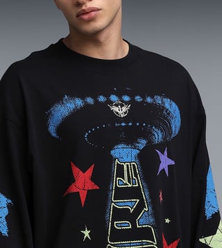 Elevate your streetwear style with the Puma Black MELO X STAR VISION Relaxed Fit Oversized Tee. Made for comfort and style, this tee features a relaxed fit and oversized design for a trendy, laid-back look. Crafted with soft, high-quality materials, it offers all-day comfort while making a bold statement. Whether you're hitting the gym or hanging out with friends, this tee is versatile and effortlessly cool. Upgrade your wardrobe with this must-have piece that combines fashion and comfort seamlessly.