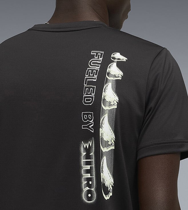 Elevate your running gear with the Puma Black Nitro Illustration Graphics Running T-Shirt. Designed for comfort and style, this regular fit tee features moisture-wicking fabric to keep you dry and cool during your workouts. The striking graphic print adds a touch of boldness to your look, while the breathable material ensures maximum breathability. Whether you're hitting the track or the gym, this shirt will keep you feeling fresh and looking sharp. Upgrade your activewear collection with this versatile and eye-catching running top.
