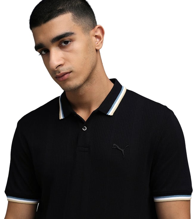 Puma Black Premium Essentials Elevated Slim Fit Rib Polo T-Shirt