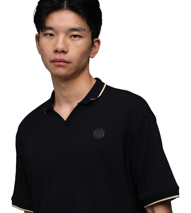 Puma Black Premium Essentials Jacquard Boxy Fit Polo T-Shirt