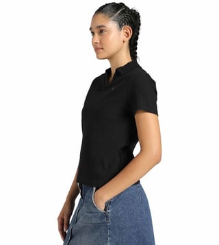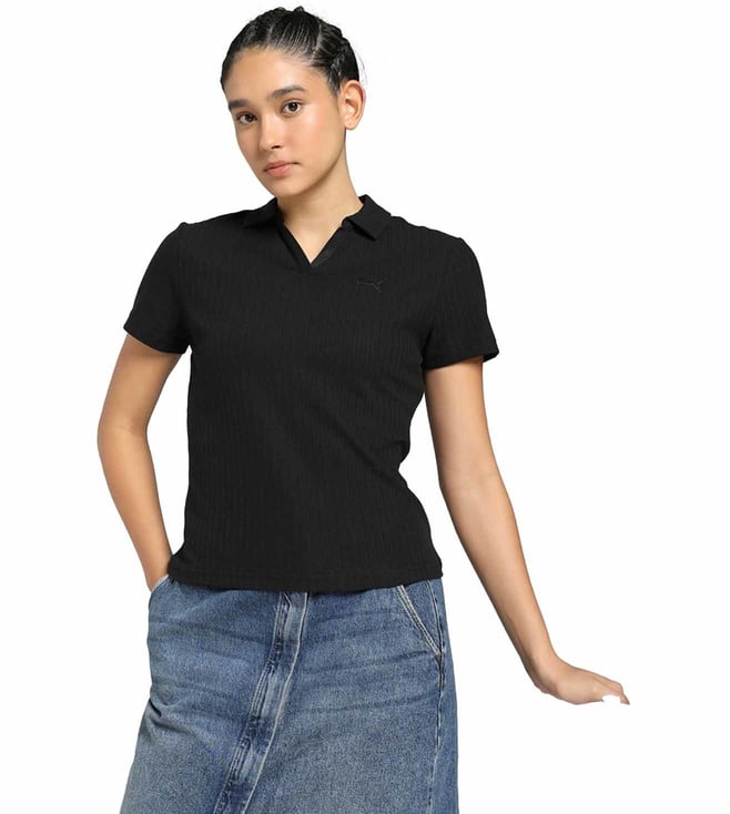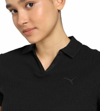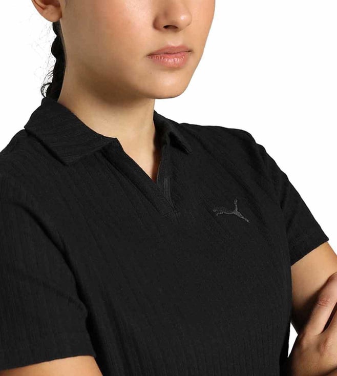 Puma Black Premium Essentials Ribbed Regular Fit Polo T-Shirt