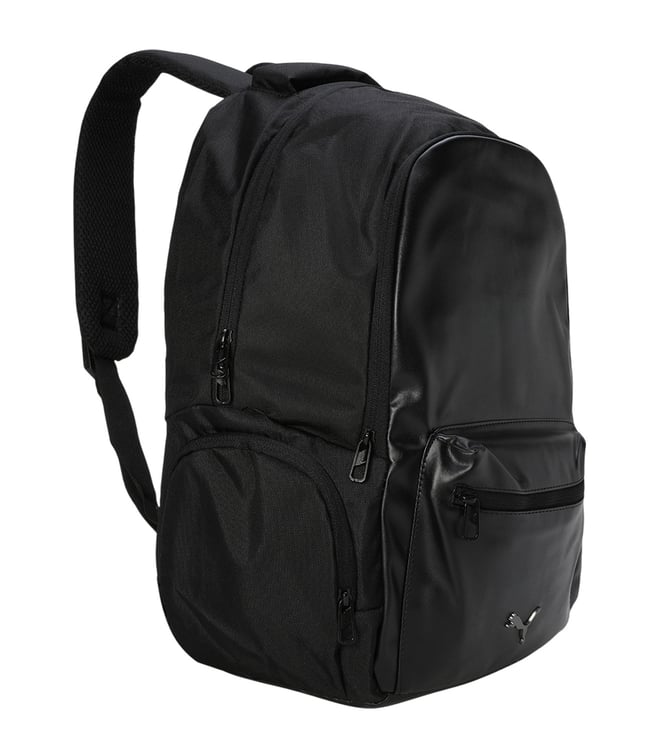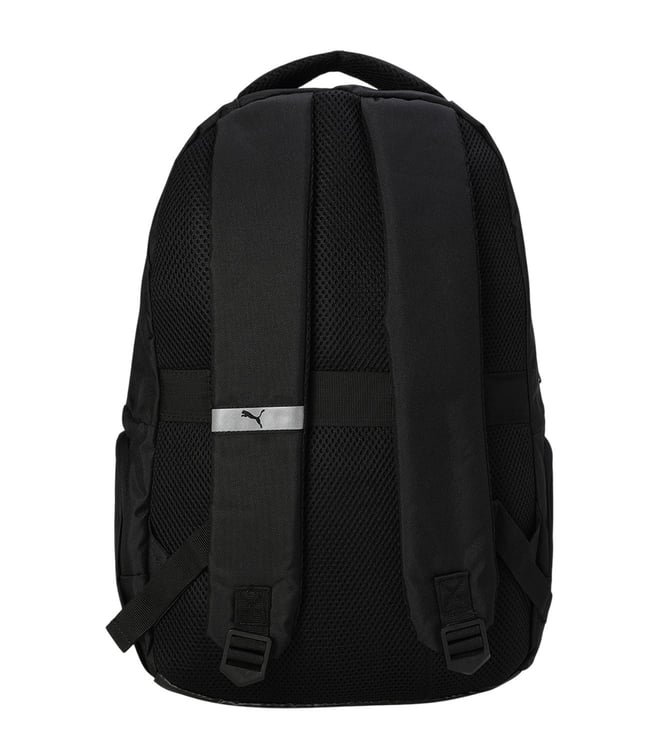 Whether storming across campus or into the wilderness, this sleek yet refined backpack keeps it dry and organized. The padded shoulder straps and back panel provide added comfort. Built for life's everyday explorations and packed with a metallic Puma cat logo and a clean silhouette, you travel in enviable athletic-inspired fashion anywhere. Designed for functionality and style, this bag features two side zipped pockets and two front zipped pockets, offering ample storage for essentials. A top carry handle, shoulder straps, and a metallic Puma cat logo complete its versatile and modern design.