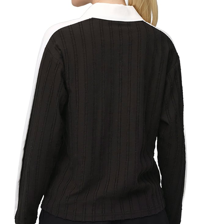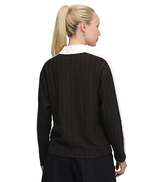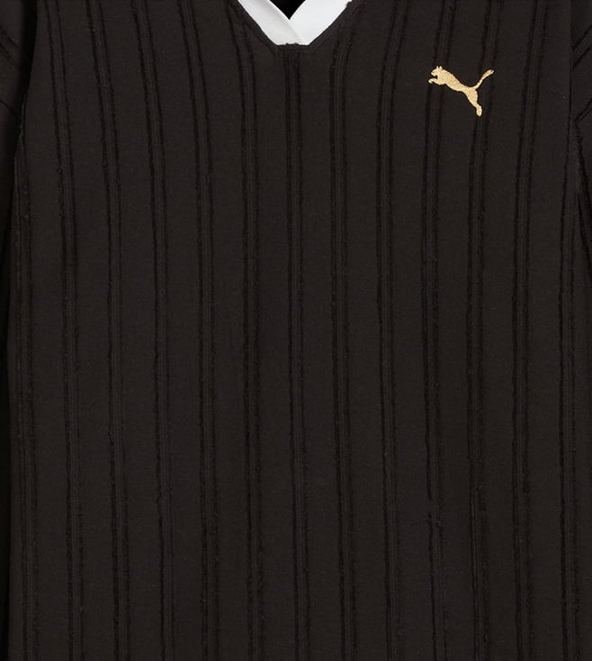 Puma Black T7 FAMILY Striped Relaxed Fit Polo T Shirt