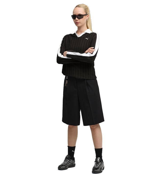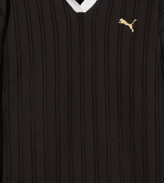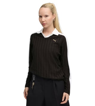 Elevate your casual style with the Puma black t7 family striped relaxed fit polo t shirt. Designed with a classic polo collar and relaxed fit, this shirt offers both comfort and sophistication. The iconic Puma t7 stripe adds a sporty touch, while the black color ensures versatility in styling. Whether you're hitting the golf course or running errands, this shirt is the perfect choice for a polished yet laid-back look. Upgrade your wardrobe with this timeless piece that seamlessly blends style and comfort.