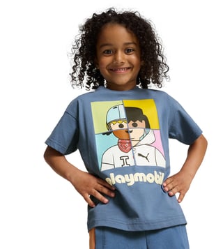 Elevate your little ones casual wardrobe with the Puma Boys Blue Playmobil Graphic Relaxed T-Shirt. Crafted for comfort and style, this t-shirt features a vibrant Playmobil print that will capture any childs imagination. Made from soft, breathable fabric, this shirt is perfect for all-day play. Whether theyre running around the playground or lounging at home, this t-shirt is sure to become a favorite. Add a pop of color and fun to their wardrobe with this must-have piece.