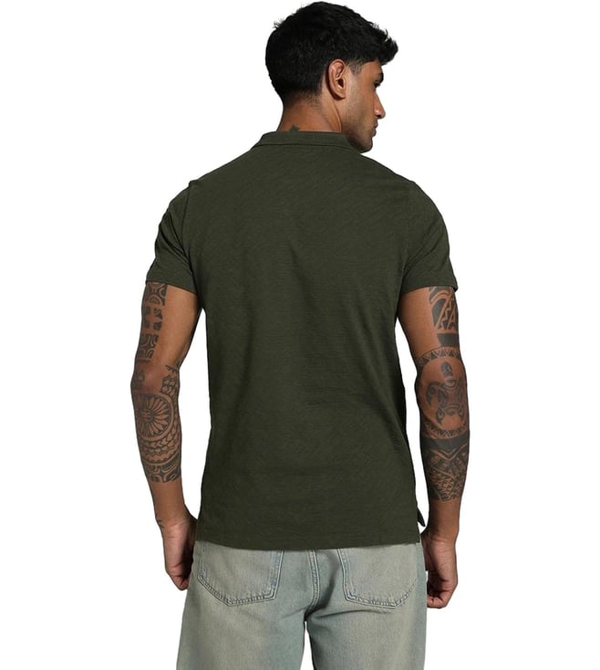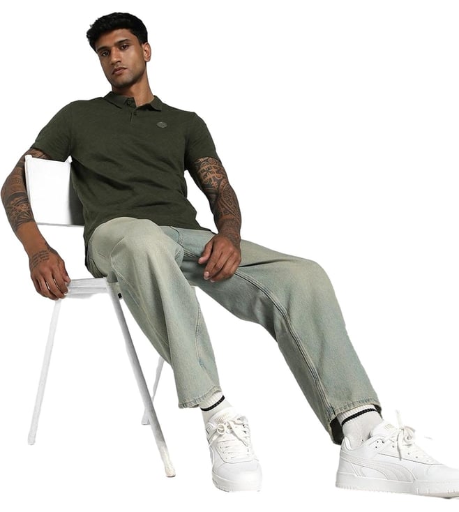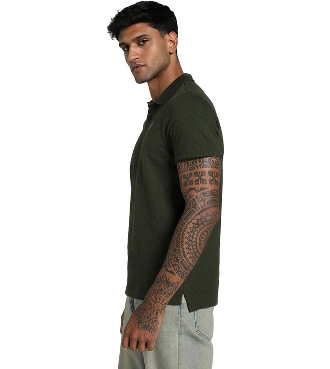 Puma Dark Olive Premium Essential Jacquard Slim Fit Polo T-Shirt