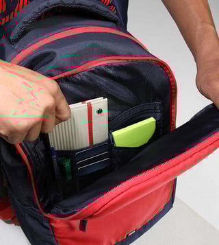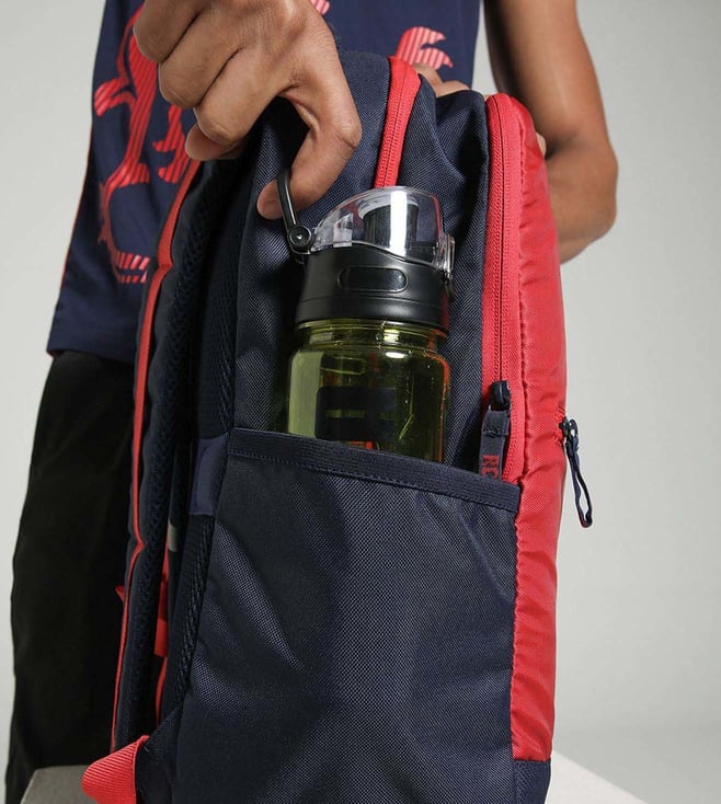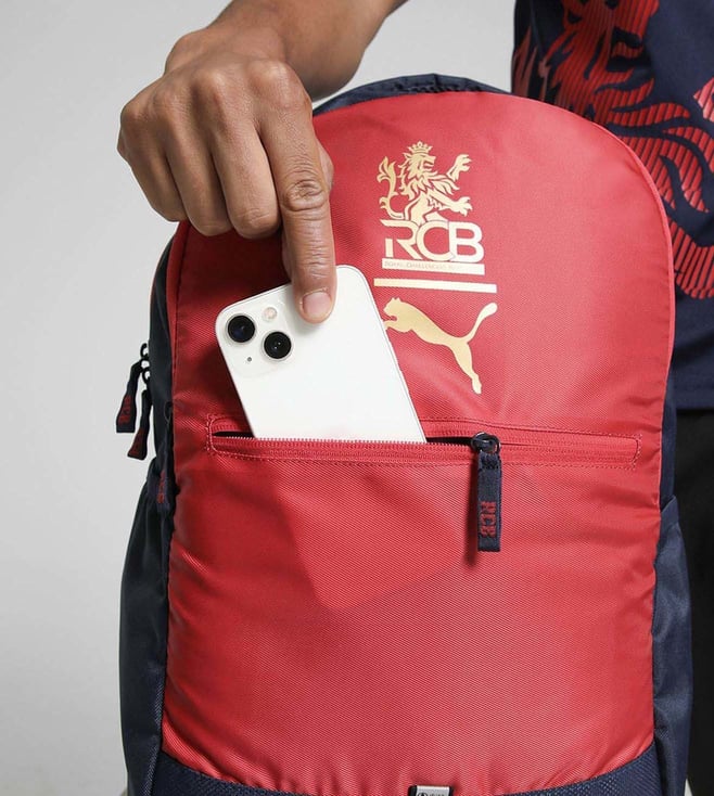 This backpack from Puma in collaboration with Royal Challengers Bangalore fuses function with flair. A spacious main compartment, front zip pocket, mesh side pockets, and reflective strap loop make it ideal for active lifestyles. It features gold-foiled Puma and RCB insignia and a top haul loop for easy handling on the go.