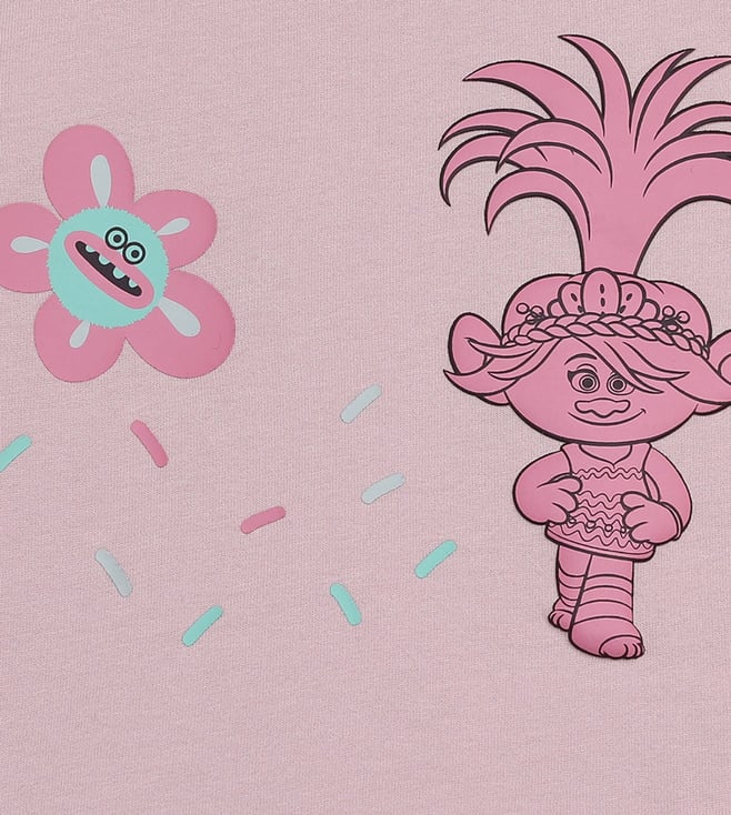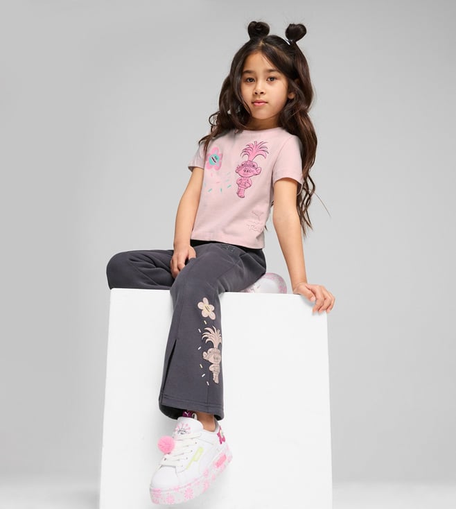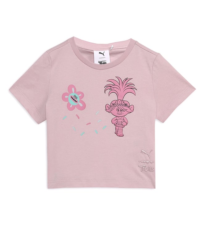 Puma Girls Pink Trolls Graphic Regular fit Short T-Shirt