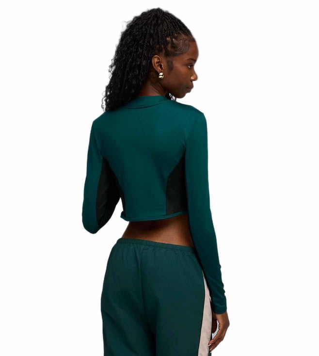 Elevate your style with the Puma Green Terrain F1 Wmns Lr Ls Corset Skinny Corset Top. Made of high-quality polyester, this top features a flattering corset design that accentuates your curves. With long sleeves and a round neck, this top is perfect for daily wear, whether you are running errands or meeting friends for coffee. Stay comfortable and stylish all day long with this versatile and chic piece.