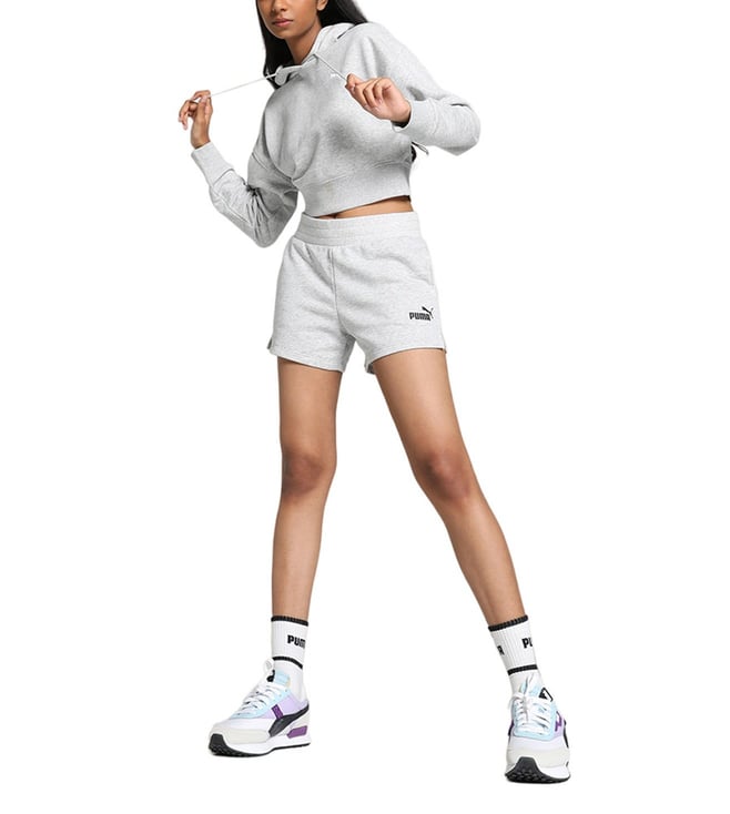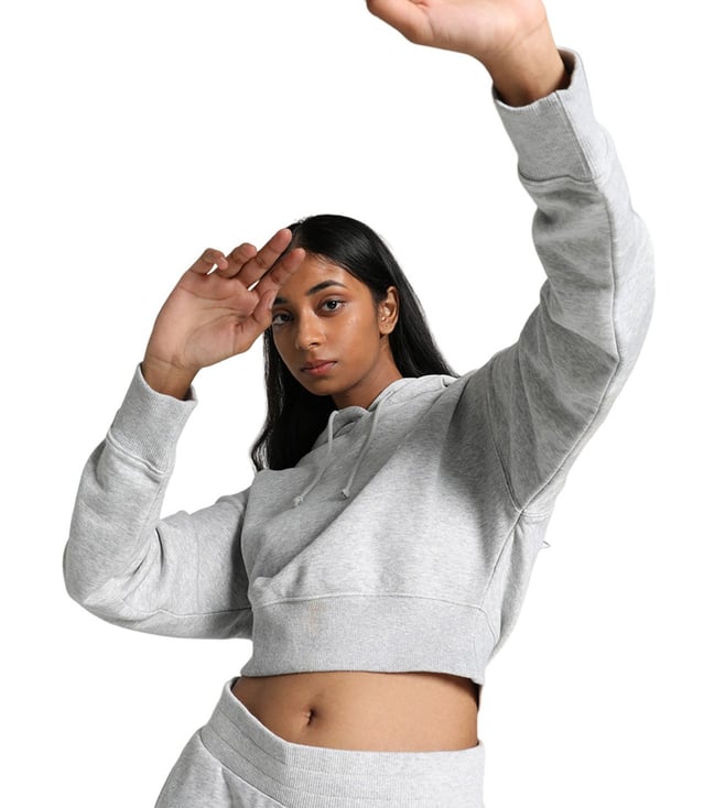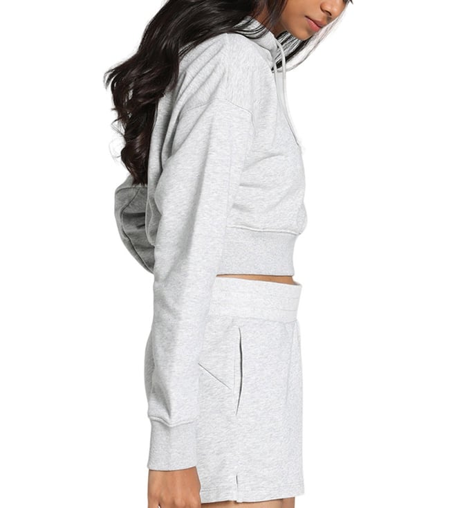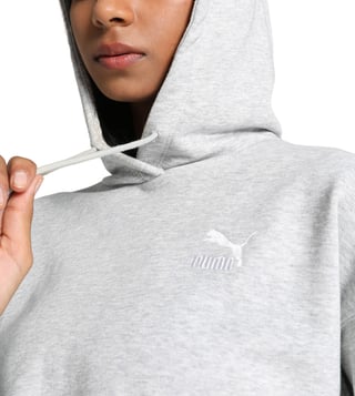 PUMA Grey Classics Relaxed Fit Cropped Hoodie