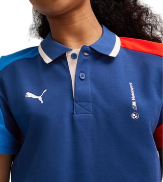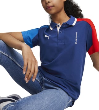 Power through your goals in this must-have BMW MMS t-shirt. Built for youth in motion, its breathable fabric and tailored cut provide ultimate comfort so you can accelerate performance on or off the field. The flattering collar features a partner logo on the left side of the chest and the Puma cat logo on the right side of the chest.