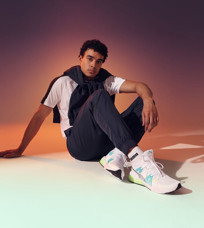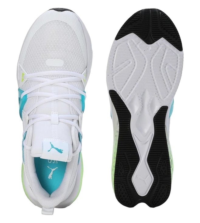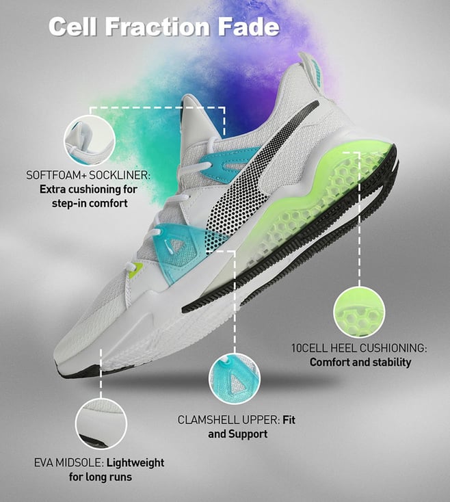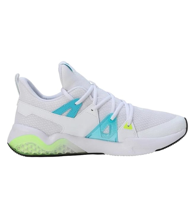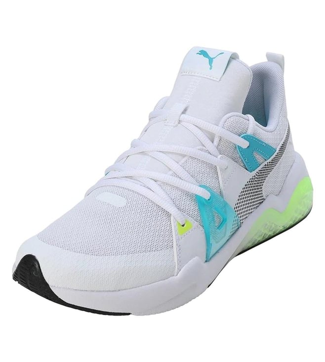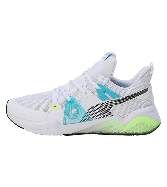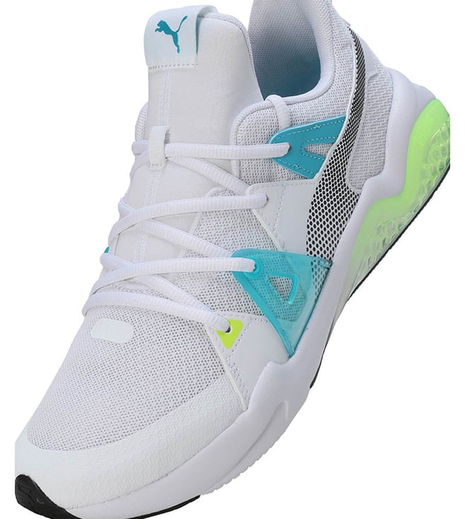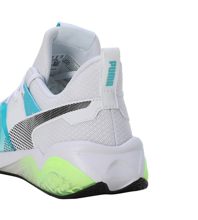 PUMA Men's White, Scuba Blue & Yellow Alert Cell Fraction Fade Res Running Shoes