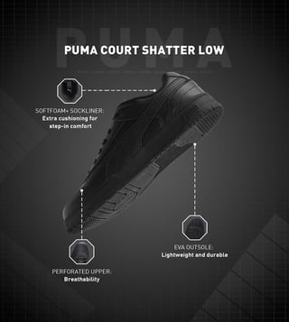 The Court Shatter Low sneakers are all about clean court styling with a modern twist. Featuring a perforated upper for breathability and a low-top design for that classic look, they are perfect for dominating that casual street style. With their sleek silhouette and lacing for a secure fit, these sneakers are a must-have for any sneakerhead looking to up their game.