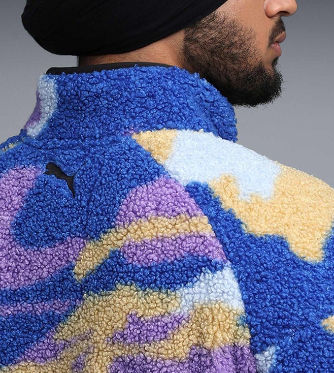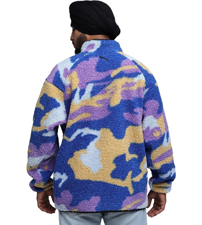 Stay warm and stylish in the Puma Multicolor Dylan Polar Camo Relaxed Fit Fleece Jacket. This jacket combines comfort and functionality with its relaxed fit and cozy fleece material. The unique multicolor camo print adds a trendy touch to your look. Whether you're hitting the gym or running errands, this jacket will keep you warm and on-trend. Upgrade your outerwear collection with this versatile and eye-catching piece from Puma.