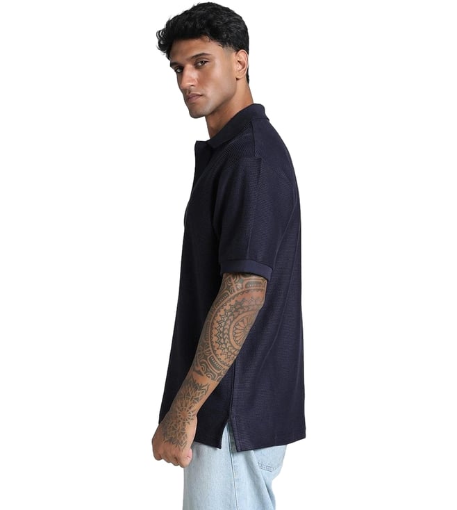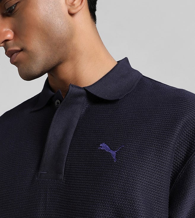Elevate your casual wardrobe with the Puma New Navy PREMIUM Jacquard Relaxed Fit Polo T-Shirt. Crafted with high-quality materials, this polo exudes sophistication and comfort. The relaxed fit ensures a flattering silhouette while the jacquard detailing adds a touch of luxury. Perfect for everyday wear or a night out, this versatile piece effortlessly combines style and ease. Upgrade your look with the Puma New Navy PREMIUM Jacquard Relaxed Fit Polo T-Shirt.
