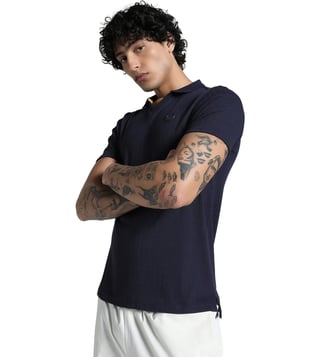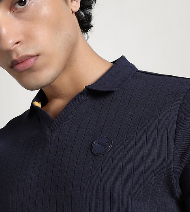 Elevate your casual wardrobe with the Puma New Navy Premium Essentials Slim Fit Ribbed Polo T-Shirt. Crafted with a slim fit design and ribbed texture, this polo t-shirt combines style and comfort effortlessly. The premium quality material ensures durability and long-lasting wear, making it a versatile piece for any occasion. Whether you're dressing up for a night out or keeping it casual, this t-shirt is a must-have addition to your collection. Upgrade your look with this timeless and sophisticated piece from Puma.