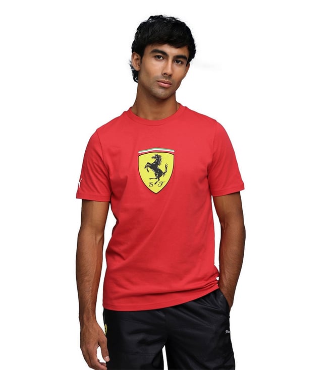 Ferrari Red Cotton Regular Fit Printed T-Shirt