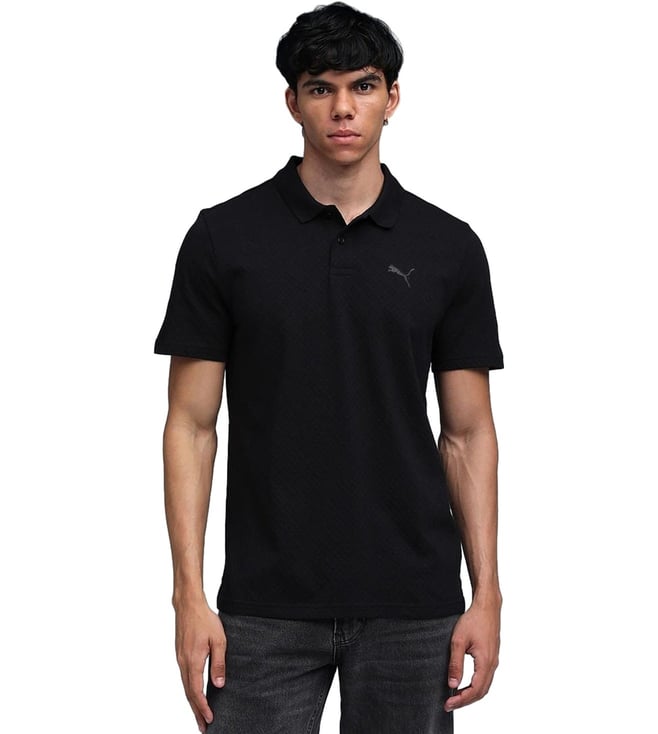Black Premium Essentials Jacquard Slim Fit Polo T-Shirt