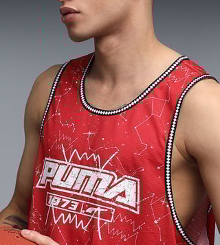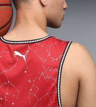 Elevate your game with the Puma Red Hoopaverse Printed Basketball Jersey. Designed for performance and style, this jersey features a regular fit for optimal comfort on the court. The moisture-wicking fabric keeps you dry and cool during intense games, while the vibrant red color and hoopaverse print make a bold statement. Take your basketball skills to the next level with this eye-catching and functional jersey.