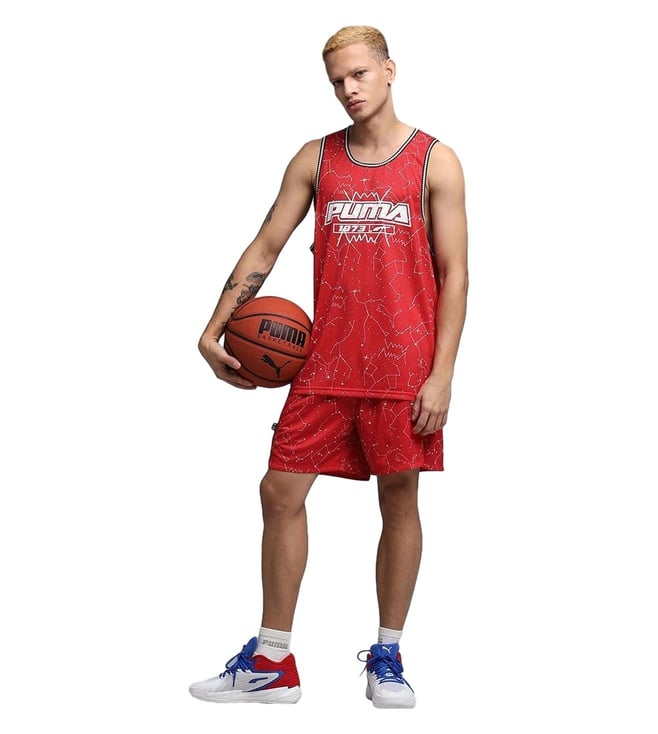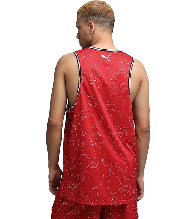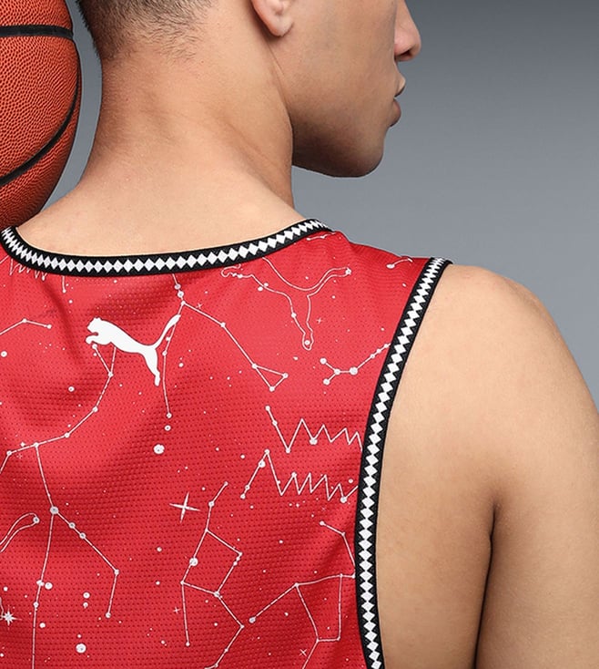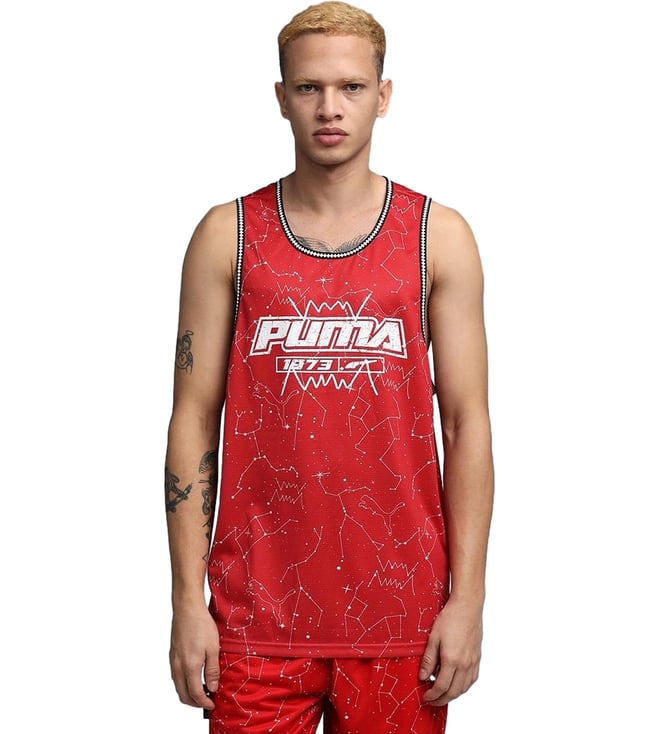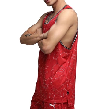 Puma Red Hoopaverse Printed Regular Fit Moisture Wicking Basketball Jersey