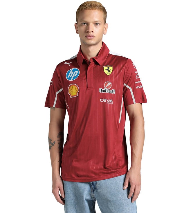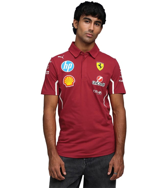 Dark Cherry Scuderia Ferrari Regular Fit Polo T-Shirt