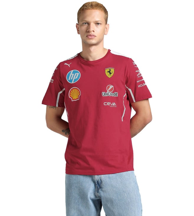 Dark Cherry Scuderia Ferrari 2025 Printed Regular Fit Motorsport T-Shirt