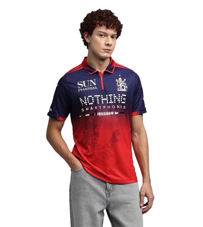 x RCB 2026 Authentic Navy & Flame Scarlet Regular Fit Printed Sports Polo