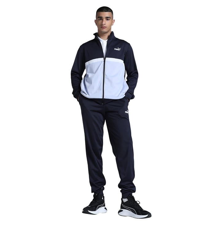 New Navy Polyster Color-Block Full Sleeves Tracksuit