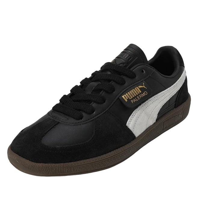 PUMA Unisex Black, Feather Grey & Gum Palermo Lth Res Sneakers