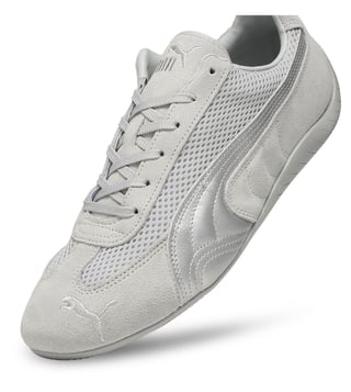 A PUMA icon inspired by the speed of the racetrack: the Speedcat OG sneakers. With a classic race shoe-inspired shape and sleek lines that look fast and bold. This premium version has a mesh upper and metallic leather PUMA Formstrip down the sides. Own the low-profile trend with this iconic silhouette.