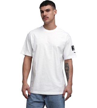 Elevate your style with the Puma White BMW MMS AOP Regular Fit Tee. Made for the modern trendsetter, this tee features a sleek design inspired by BMW's iconic aesthetic. The regular fit provides comfort and versatility, while the all-over print adds a unique touch to your look. Whether you're hitting the gym or running errands, this tee is the perfect choice for those who appreciate both style and functionality. Upgrade your wardrobe with this must-have piece today.