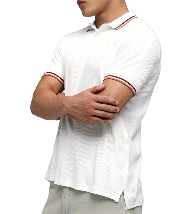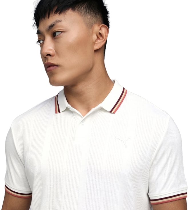 Puma White Premium Essentials Elevated Slim Fit Rib Polo T-Shirt