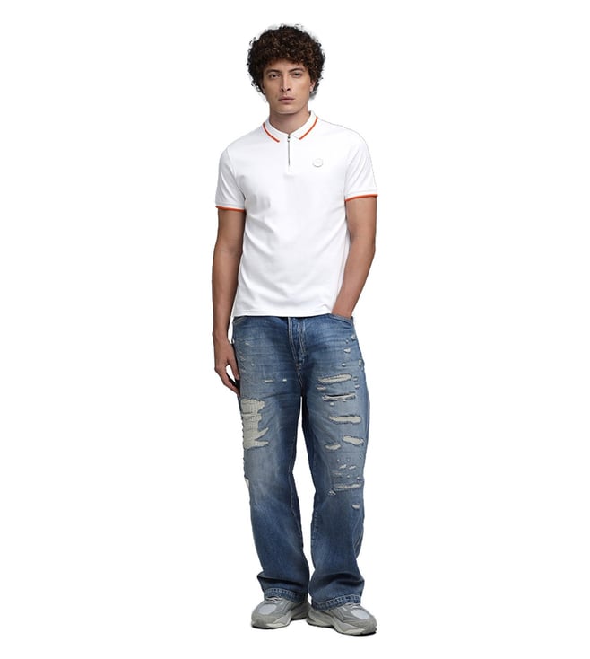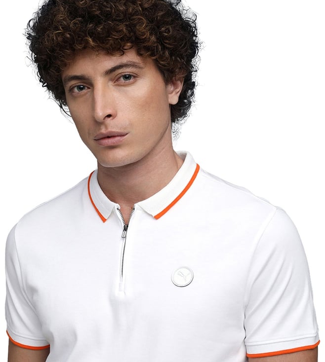 Puma White Premium Slim Fit Zipper Placket Polo T-Shirt
