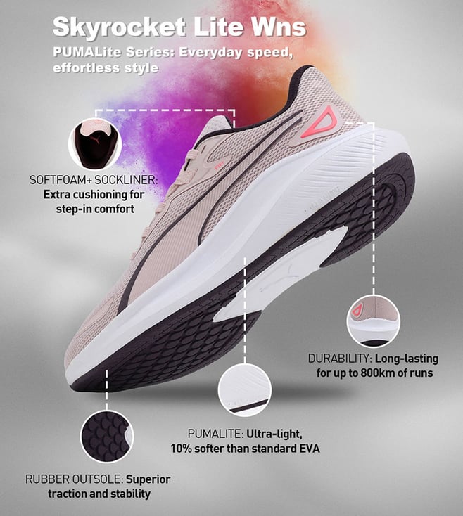 PUMA Women's Essentials Skyrocket Lite Mauve Mist & Midnight Plum Running Shoes