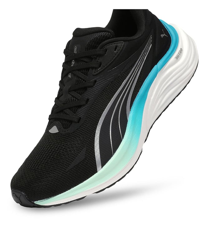 PUMA Women's Electrify NITRO 4 Black & Speed Blue Running Shoes