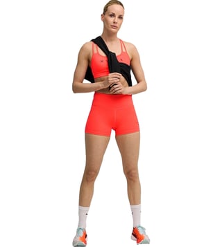 Elevate your style with the puma red high rise slim fit shorts. Designed for both comfort and fashion, these shorts feature a flattering slim fit and a high-rise waist that accentuates your curves. The vibrant red color adds a pop of color to any outfit, making it perfect for both casual outings and workouts. Made with high-quality materials, these shorts are durable and will keep you looking stylish for seasons to come. Upgrade your wardrobe with these versatile and trendy shorts that are sure to turn heads wherever you go.