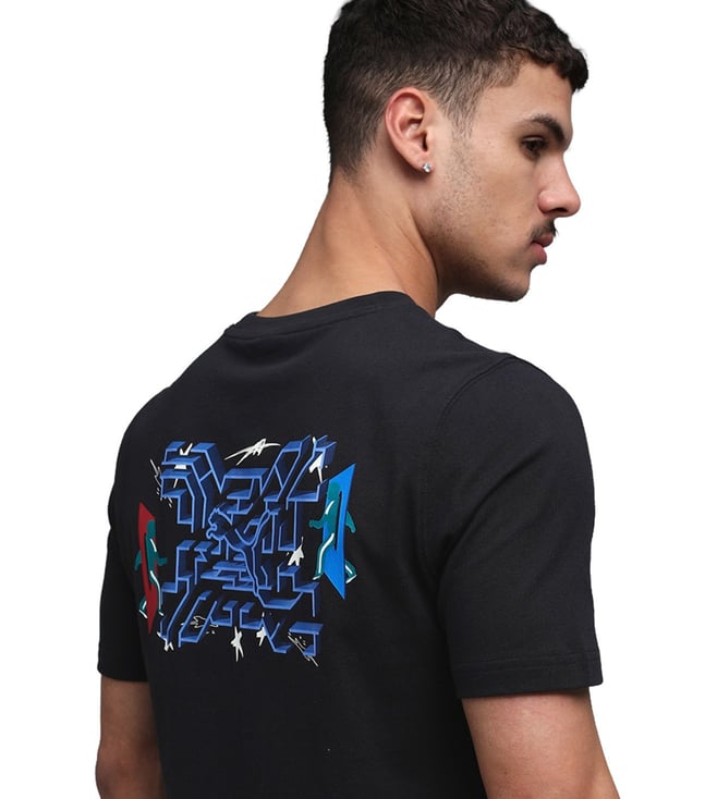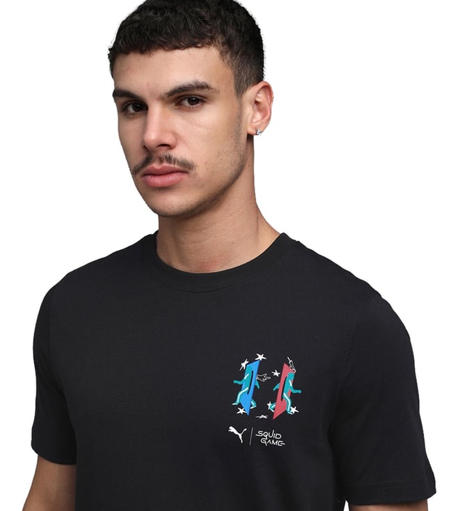 Step into the world of Squid Game with the Puma x Squid Game Black Printed Regular Fit Glow T-Shirt. This unique collaboration brings together the iconic Puma style with the thrilling aesthetics of the hit show. The glow-in-the-dark print adds a captivating touch to the classic black tee, ensuring you stand out in any crowd. With a regular fit design, this shirt offers both comfort and style, making it the perfect choice for fans of the show and fashion enthusiasts alike. Elevate your wardrobe with this must-have piece that seamlessly blends streetwear with pop culture.