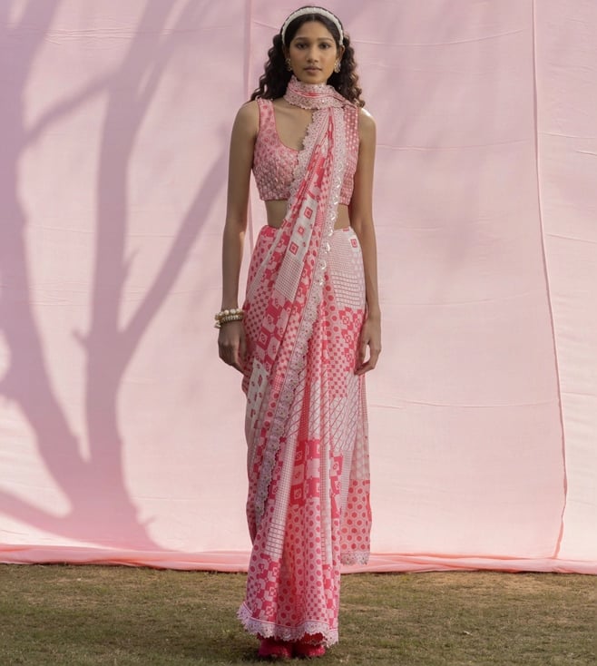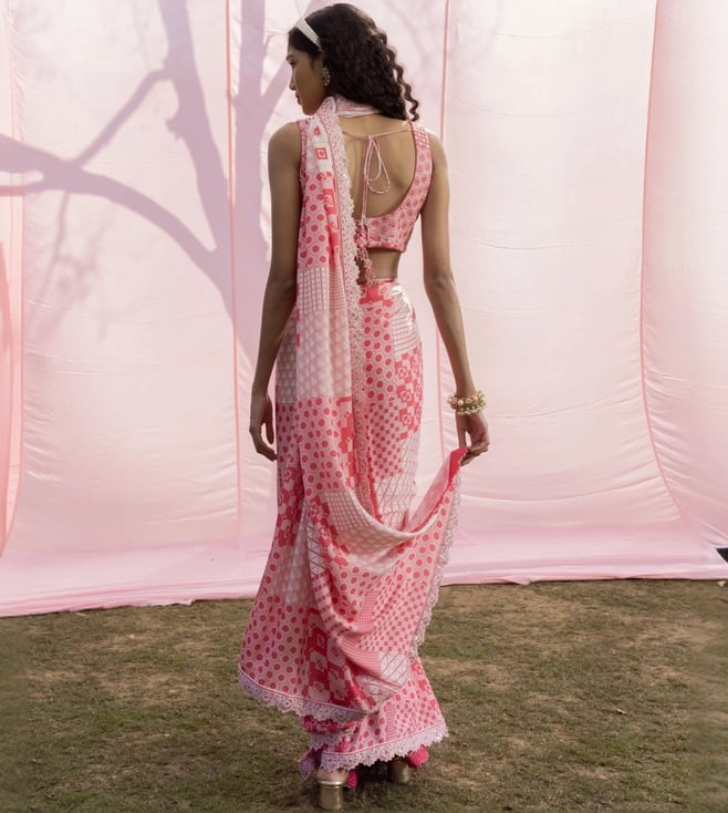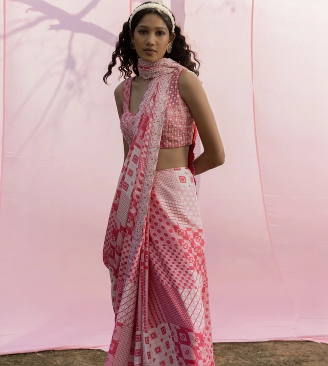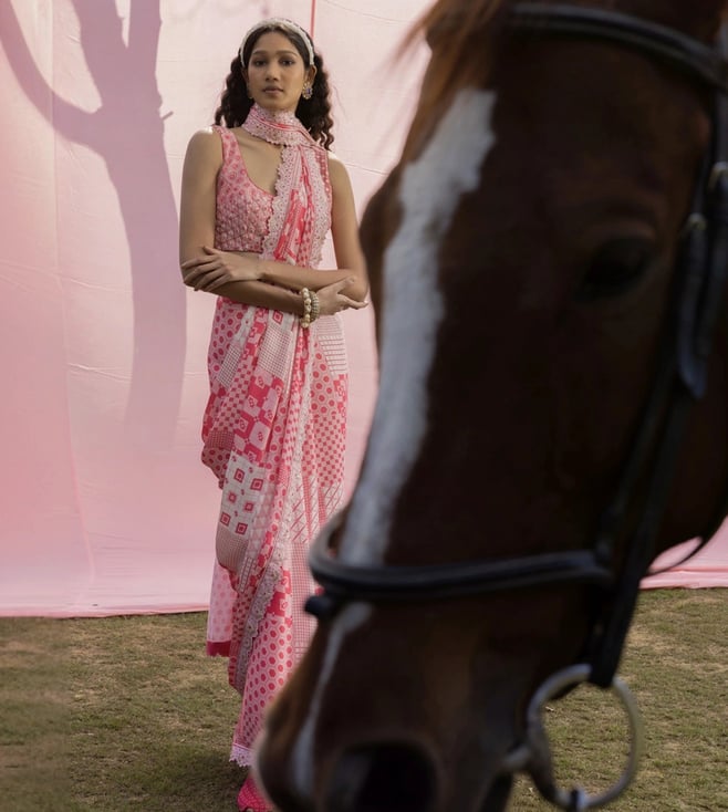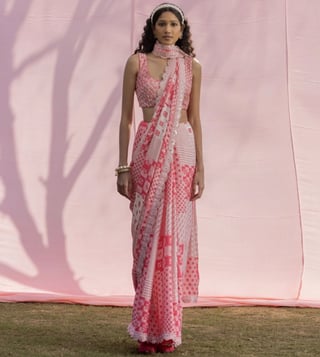 Punit Balana Ivory, Masoom Gulaabi and Moonga Modern Jaipur Printed Saree With Blouse