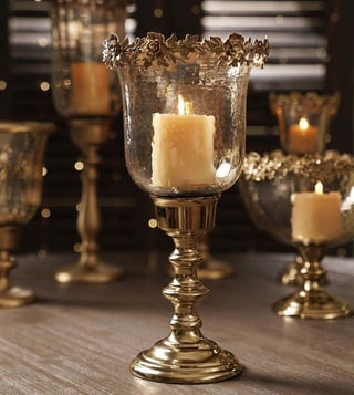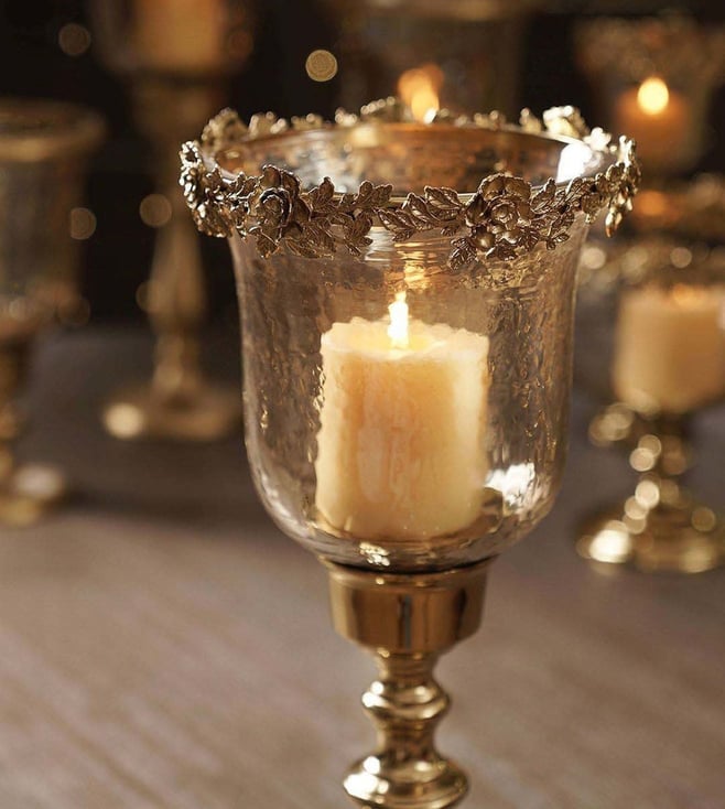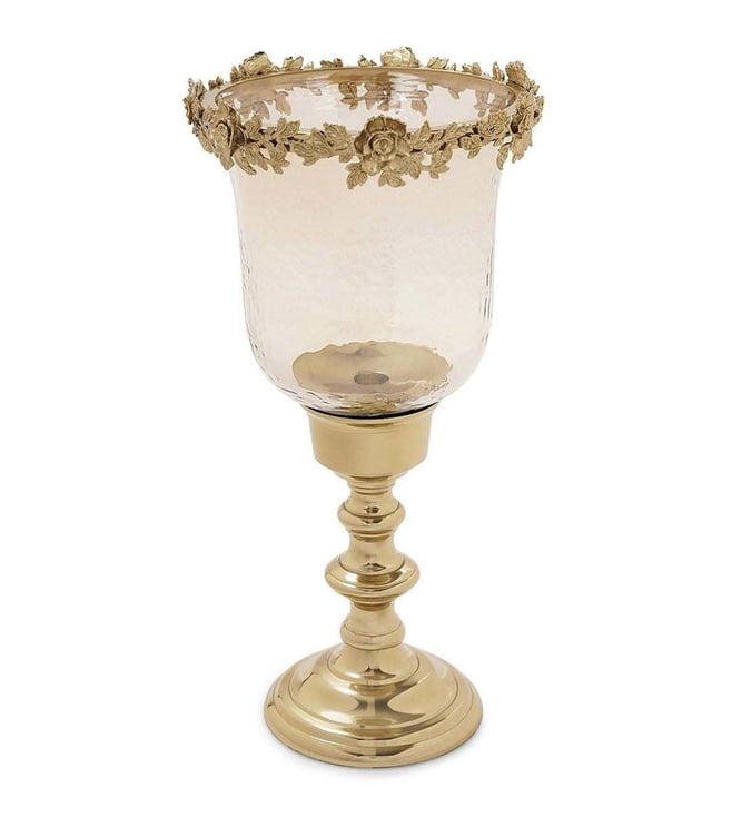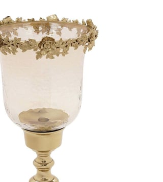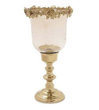 Pure Home and Living Amber & Gold Aluminium Hammered Large Candle Holder