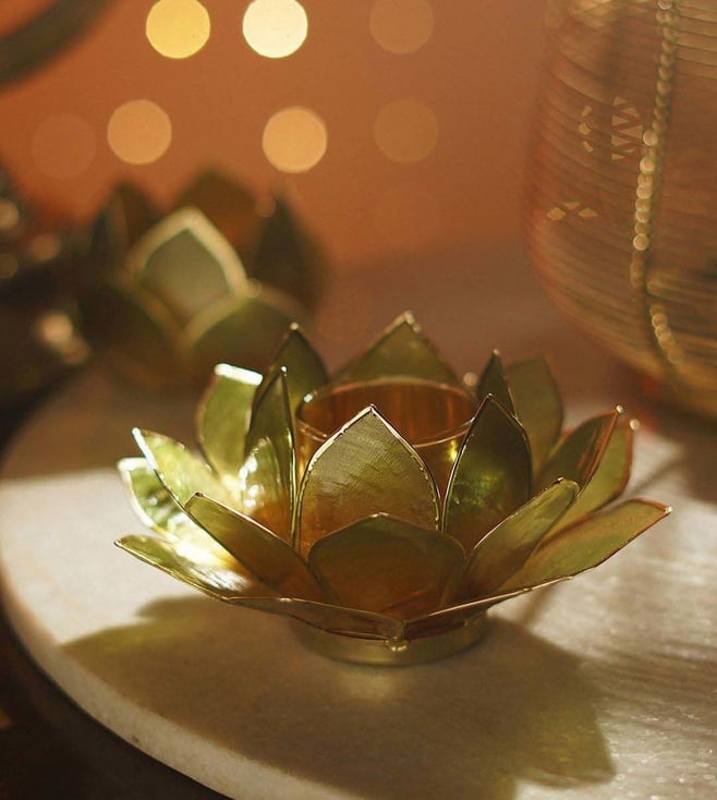 Illuminate your space with a touch of class in this set of 1 22 petals capiz tealight holder from Pure Home and Living. Inspired by a lotus, this tea light holder features twenty-two translucent capes shell petals. It is crafted from metal.