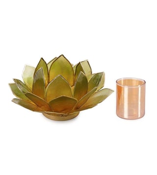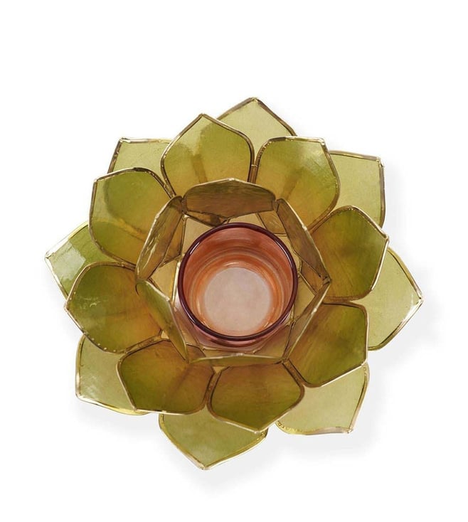 Pure Home and Living Amber & Green Ombre Metal 22 Petals Capiz Tealight Holder