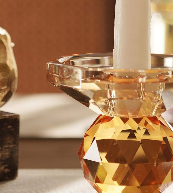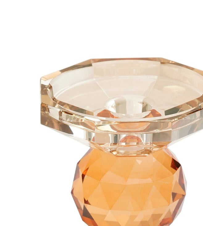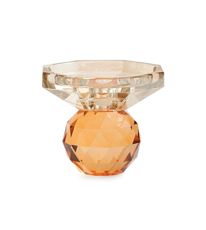 Pure Home and Living Amber & Orange Glass Crystal Candle Holder