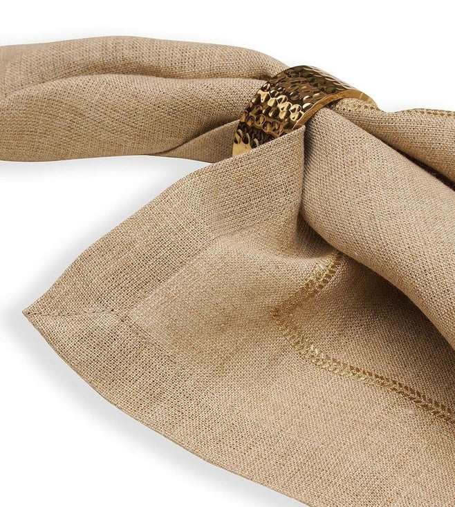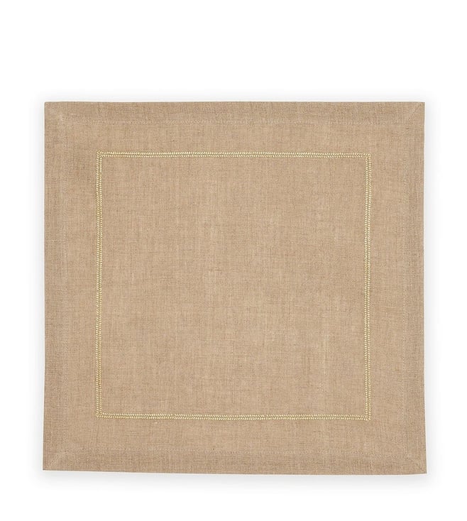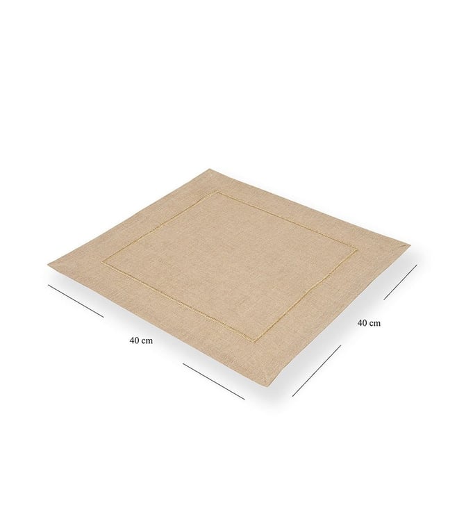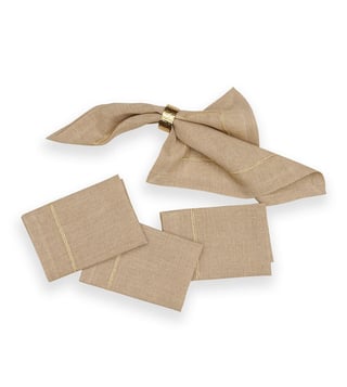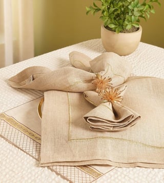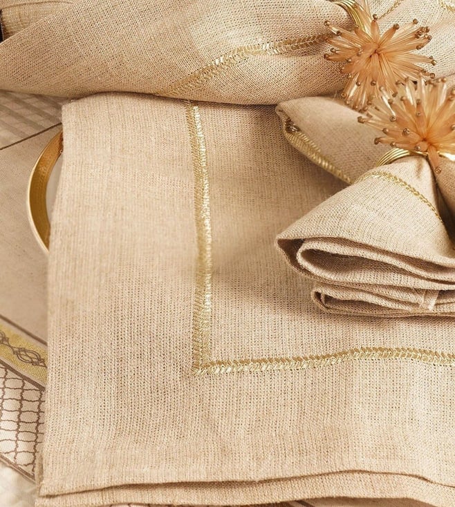 Pure Home and Living Beige Linen Zari Embroidered Square Napkins - Set of 4