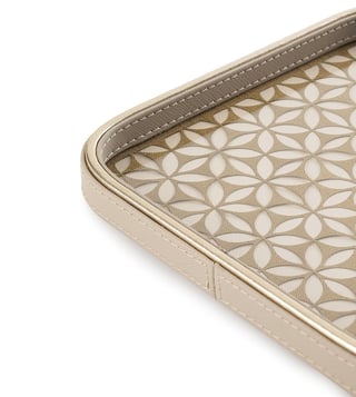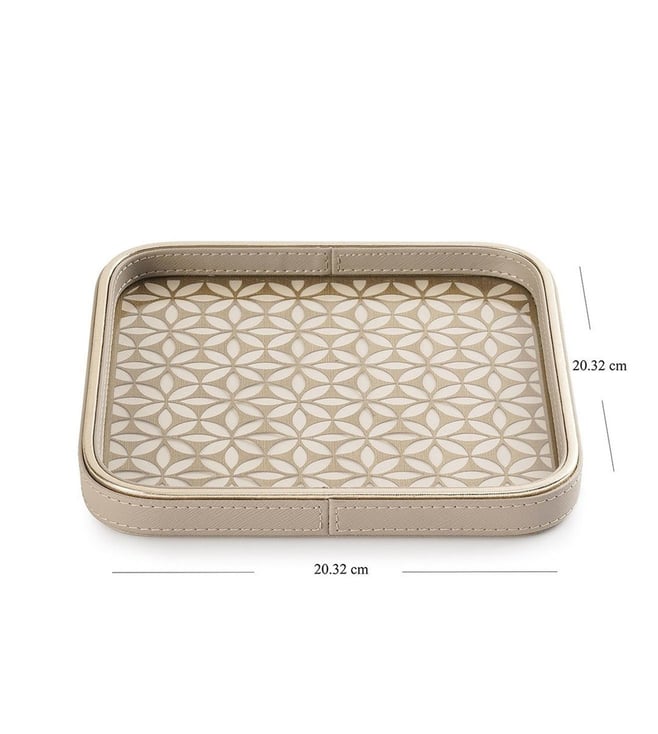 Elevate your home decor with the Pure Home and Living beige mdf lazer cut platter (small). This exquisite piece features intricate laser-cut detailing on high-quality mdf, adding a touch of elegance to any space. Perfect for serving snacks or displaying decor, this platter seamlessly blends style and functionality. Bring a touch of sophistication to your home with this beautifully crafted platter.